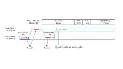 - Ability to support multiple IEEE 802.15.4 protocols such as Zigbee and Thread operating on different channels