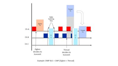 - Bluetooth LE continues to operate in time-sliced DMP mode, interrupting CMP (Zigbee + Thread) as needed.