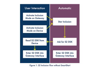 Z-Wave SmartStart removes the need for initiating the end device to start inclusion. Inclusion is initiated automatically on power-ON, and repeated at dynamic intervals for as long as the device is not included into a Z-Wave network. As the new device announces itself on power-ON, the protocol will provide notifications, and the gateway can initiate the inclusion process in the background, without the need for user interaction or any interruption of normal operation. This improvement also removes the possibility of other devices being included, as the SmartStart inclusion process only includes authenticated devices.