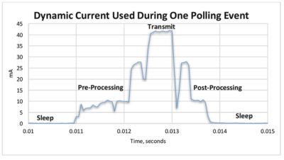 Most modern wireless transceivers offer sleep modes when not in use to save power; however, the sleep-state power numbers within the device’s electrical specification cannot be the sole consideration when calculating the device power budget. The wireless transceiver’s wake-up/sleep transition times, along with the processing algorithms prior to any transmission, should also be included when calculating the total wireless power budget.