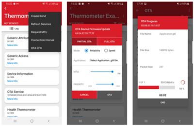 The last piece of requirements was having support for over-the-air device firmware update (OTA DFU). If the engineer started building their code based on the Silicon Labs Simplicity SDK, then the OTA service is included by default. Ultimately the OTA capability will likely be built-in to the device's companion mobile app. Still, since it was earlier stated that the app wasn't available, we can revert to Simplicity Connect BLE app to test OTA DFU.