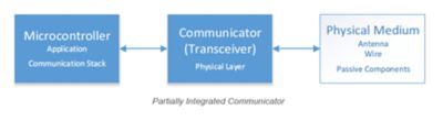 Full integration means the connectivity mechanism is fully integrated into the MCU and only passive devices are assisting in connecting the MCU to the communication medium, as shown below.