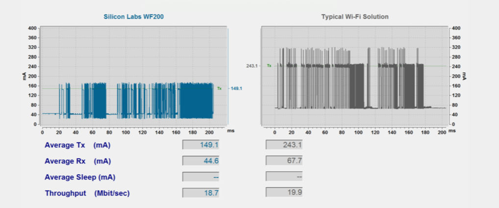 As mentioned previously, Wi-Fi devices typically have significant power consumption in Transmit and Receive modes (Transmit power consumption is typically in the 200-400 mA range, while Receive power consumption is typically in the 50-100 mA range). Therefore, choosing devices with the lowest possible Transmit and Receive power consumption is important to reduce overall power consumption.