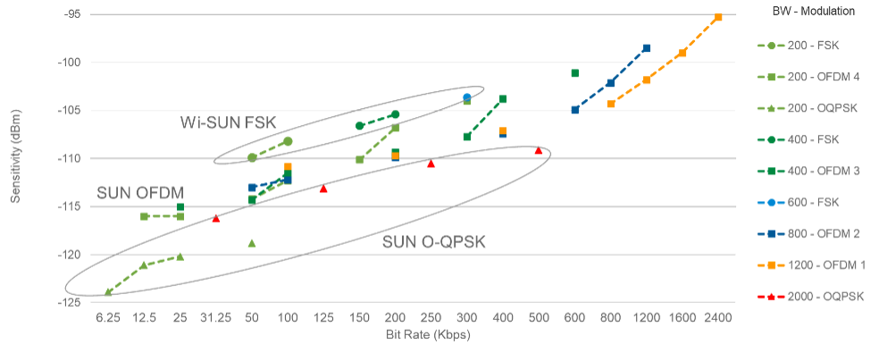 Figure 2 - Wi-SUN Data Rates and Sensitivities