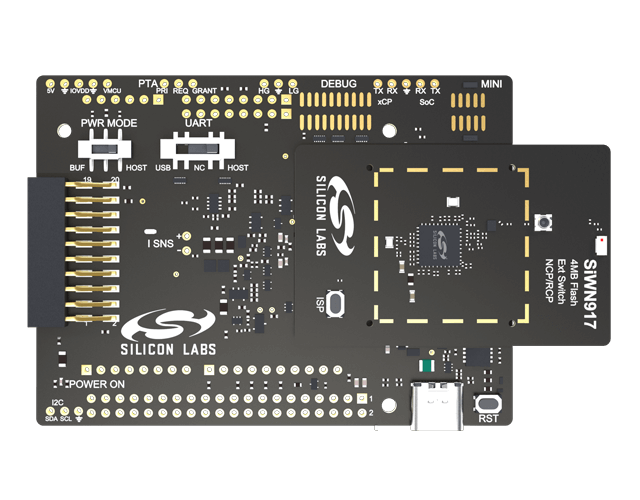 SiWx917 Wi-Fi 6 and Bluetooth LE 4MB Flash Co-Processor Radio Board SiWx917 Wi-Fi 6 and Bluetooth LE Dev Kit